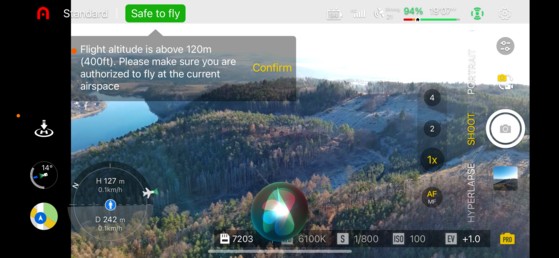 obr.: Rozumné řešení: dron na dosažení výšky 120 metrů AGL podle místa startu nepřehlédnutelně upozorňuje, ale její překročení dovolí (Autel Nano)